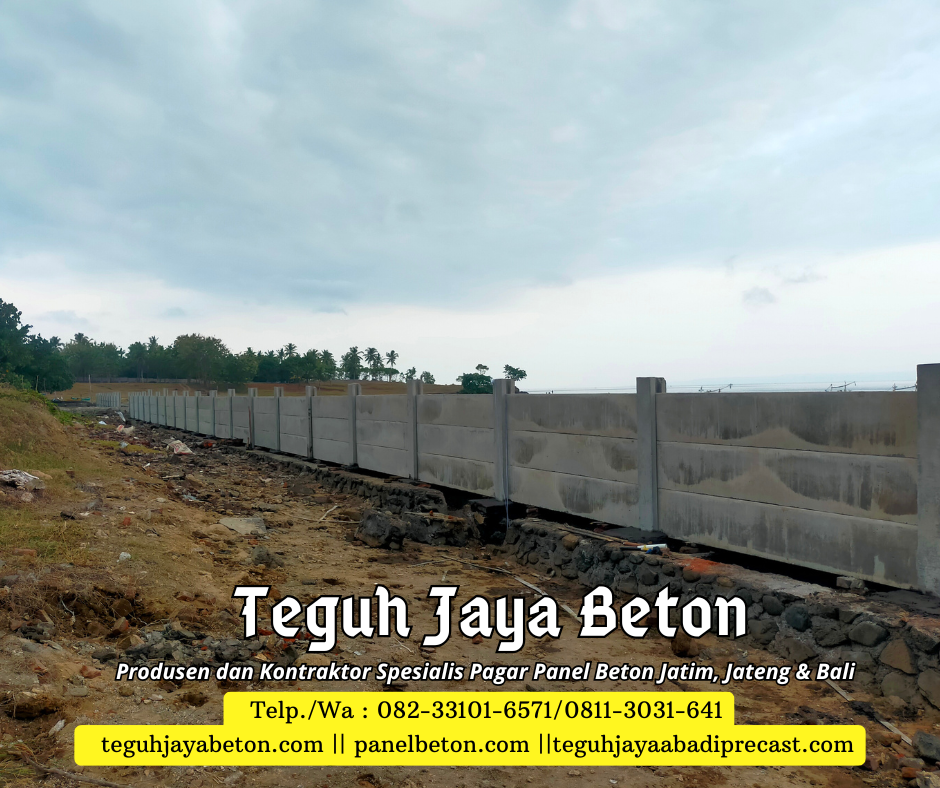 Sebagai produsen dan kontraktor pagar panel beton, Kami siap memenuhi kebutuhan pagar panel beton Anda.  Dengan pengalaman yang terbilang cukup di bidangnya Teguh Jaya siap melayani Anda dengan sepenuh hati. Jaminan kualitas produk dan pelayanan yang prima menjadi motivasi andalan dari Teguh Jaya. Teguh Jaya melayani jasa penjualan dan pemasangan Pagar panel beton untuk area Jawa Timur, Jawa Tengah dan Bali. Jangan ragu lagi segera order produk di Kami….