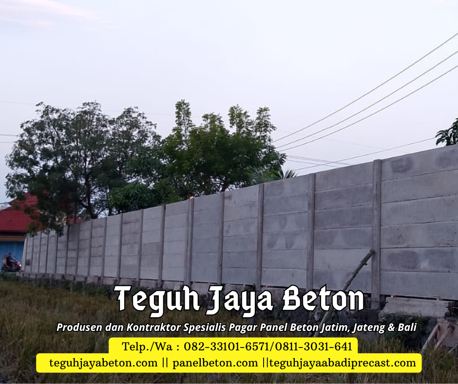 Sebagai produsen dan kontraktor pagar panel beton, Kami siap memenuhi kebutuhan pagar panel beton Anda. Dengan pengalaman yang terbilang cukup di bidangnya Teguh Jaya siap melayani Anda dengan sepenuh hati. Jaminan kualitas produk dan pelayanan yang prima menjadi motivasi andalan dari Teguh Jaya. Teguh Jaya melayani jasa penjualan dan pemasangan Pagar panel beton untuk area Jawa Timur, Jawa Tengah dan Bali. Jangan ragu lagi segera order produk di Kami….