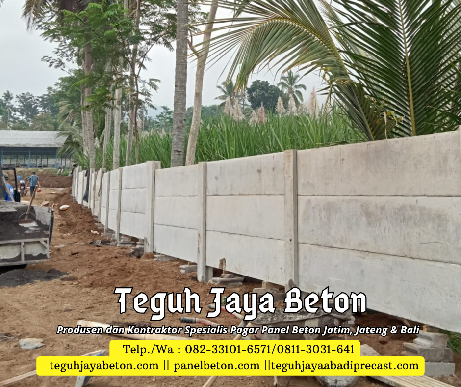 Sebagai produsen dan kontraktor pagar panel beton, Kami siap memenuhi kebutuhan pagar panel beton Anda. Dengan pengalaman yang terbilang cukup di bidangnya Teguh Jaya siap melayani Anda dengan sepenuh hati. Jaminan kualitas produk dan pelayanan yang prima menjadi motivasi andalan dari Teguh Jaya. Teguh Jaya melayani jasa penjualan dan pemasangan Pagar panel beton untuk area Jawa Timur, Jawa Tengah dan Bali. Jangan ragu lagi segera order produk di Kami….