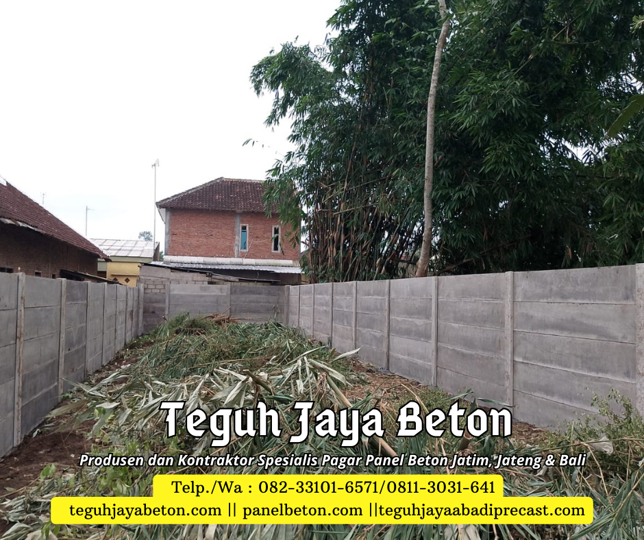 Sebagai produsen dan kontraktor pagar panel beton, Kami siap memenuhi kebutuhan pagar panel beton Anda. Dengan pengalaman yang terbilang cukup di bidangnya Teguh Jaya siap melayani Anda dengan sepenuh hati. Jaminan kualitas produk dan pelayanan yang prima menjadi motivasi andalan dari Teguh Jaya. Teguh Jaya melayani jasa penjualan dan pemasangan Pagar panel beton untuk area Jawa Timur, Jawa Tengah dan Bali. Jangan ragu lagi segera order produk di Kami….
