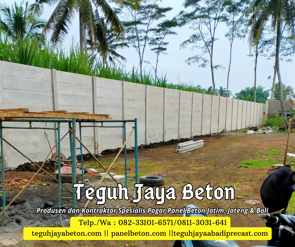 Sebagai produsen dan kontraktor pagar panel beton, Kami siap memenuhi kebutuhan pagar panel beton Anda. Dengan pengalaman yang terbilang cukup di bidangnya Teguh Jaya siap melayani Anda dengan sepenuh hati. Jaminan kualitas produk dan pelayanan yang prima menjadi motivasi andalan dari Teguh Jaya. Teguh Jaya melayani jasa penjualan dan pemasangan Pagar panel beton untuk area Jawa Timur, Jawa Tengah dan Bali. Jangan ragu lagi segera order produk di Kami….